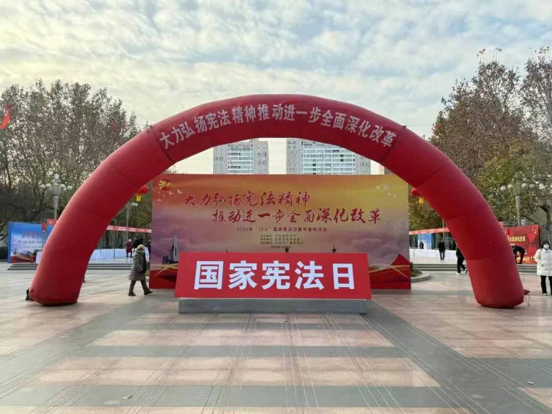 12月4日上午,省、市联合在石家庄西清公园(省会法治公园)举办了国家宪法日大型集中宣传活动。活动分“谁执法谁普法”、涉外法律法规、优化营商环境、红色法治文化、驻石省属高校5个宣传专区,省、市约200多个部门,1000余名工作人员参加,省、市有关领导进行了视察。宪法宣传周期间,全市共发放宣传资料26万份,设置展板2400个,悬挂条幅1565幅,解答群众咨询1.6万人次。