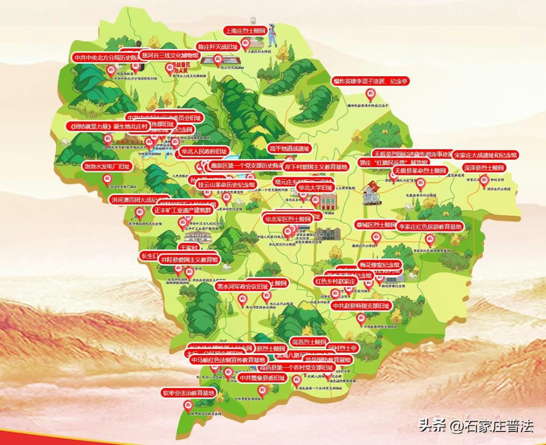 以“寻法源、兴法治、铸法魂”为主题,开展了红色法治文化建设,形成了60个红色法治文化遗存目录,设计了7条红色法治文化旅游路线,制作了宣传画册,全方位、全角度、全景式展示石家庄市法治文化成果。