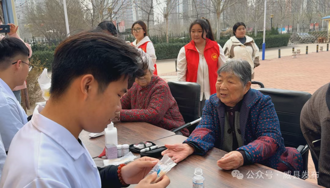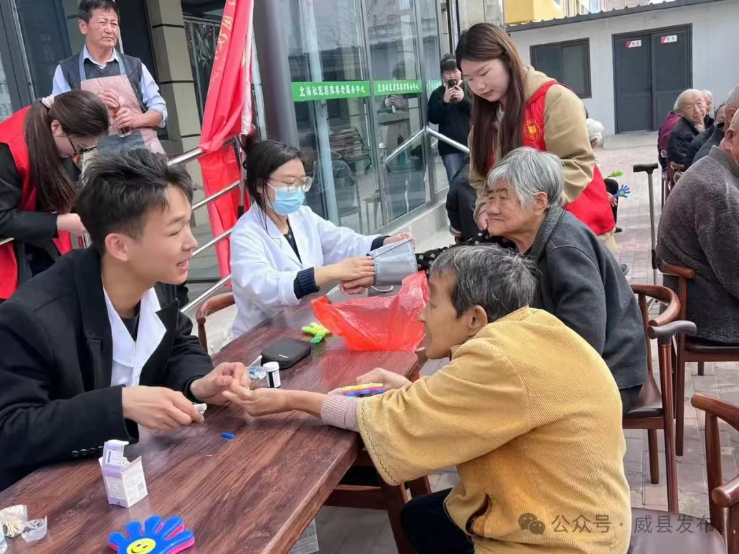 随后,志愿者为老人提供了测血压、血糖服务,帮助老人及时了解了自己的身体状况,也为后续的健康管理提供了重要的参考依据。