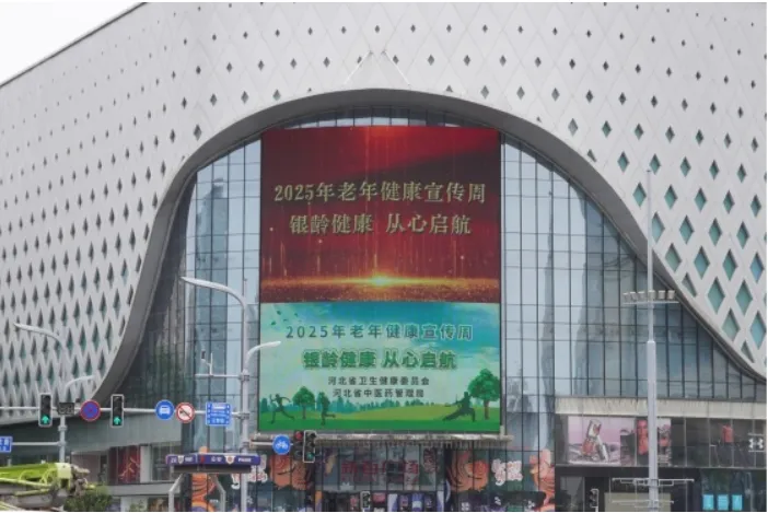 石家庄新百广场户外大屏播放老年健康宣传片