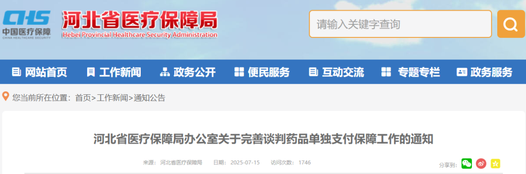 河北省医疗保障局办公室7月15日通过官网对外发布通知,为减轻患者负担,尤其是减轻罕见病等参保患者门诊医药费用负担,从谈判药品中筛选出适应症明确、年度治疗费用高、适合长期门诊治疗的57个药品,自8月1日起纳入单独支付保障范围↓↓↓