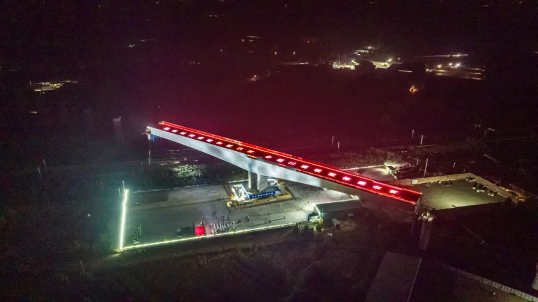 施工中,针对施工过程球铰安装精度高、现浇线形控制难、临近营业线安拆吊装风险大等特点,建设者优化施工方案,采用“先悬灌主体,后平面转体”的方式。应用BIM技术和三维可视化等新技术,沿京广铁路悬浇19个节段后,顺时针转体48°跨越京广铁路,在京广铁路路基外支架现浇直线段进行全桥合龙,转体承载力134770.35KN。转体从0:50开始,1:35结束,历时45分钟,成功跨越京广铁路。
