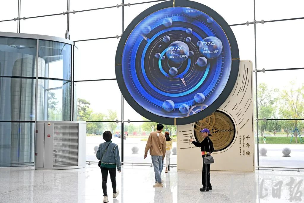 乘客在雄安站“千年轮”前拍照留念。(资料片)河北日报记者 张昊摄雄安站运用“智能+”房建运维管理系统,同时借助5G、全景影像、三维激光扫描等技术,可对拉索式幕墙、雨棚、吊顶等关键部位进行巡检,充分运用大数据深度挖掘技术和基于机器学习的图像智能识别技术,自动分析比对巡检数据及影像资料,及时发现疑似病害及其关联数据,并通过BIM模型实时实景反馈分析结果,是房建设备运维管理的一次重大革命。 雄安站还是一座“自己会发电”的车站,站顶铺设的4.2万平方米的多晶硅光伏板能够在高铁运营过程中,为高铁站提供20%的绿色电力。 “雄安站站房屋顶上的光伏设备不仅仅是单纯的发电工具,它还与整体建筑融为一体,共同展现雄安站的建筑设计之美。”国网雄安综合能源服务有限公司综合能效事业部项目经理罗晓东说。 雄安站站房屋顶上有1.77万块多晶硅光伏组件,每年可提供580万千瓦时的清洁电力,减少二氧化碳排放4500吨,相当于植树12公顷。罗晓东介绍,2020年12月25日,雄安站站房屋顶分布式光伏发电项目正式并网发电。该项目采用“自发自用,余量上网”的并网模式,给车站提供绿色电力的同时,也助力雄安“双碳”目标的实现。“我们将2023年1月至6月上网电量申报了分布式光伏项目绿色电力证书,共获得了2021张绿证。” 如今,从雄安站出发,沿着京雄城际铁路,最快49分钟可达北京西站,19分钟可达大兴机场,每日开行的21对列车,拉近了北京与雄安的距离。完善的交通设施,成为承接北京非首都功能疏解的强有力支撑。