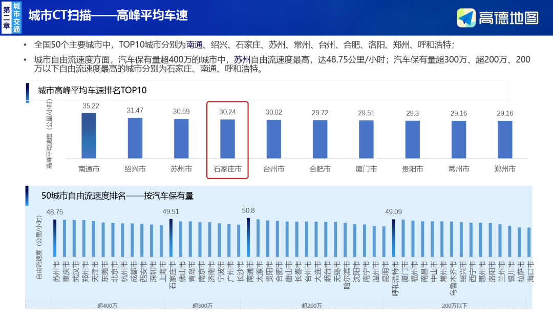 近日,高德地图联合国家信息中心、清华大学、同济大学等机构发布的《2024年中国主要城市交通分析报告》显示,在全国50个主要城市中,石家庄交通拥堵指数同比下降6.28%,下降幅度排名第二;交通健康指数在“汽车保有量超300万辆”同类城市中排名第三;高峰平均车速为30.24公里/小时,位居第四。