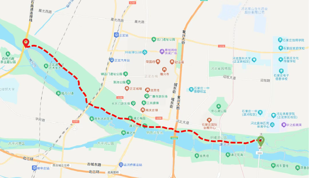 滹沱河观光专线,连接滹沱河北岸(太行大街)与河心岛,运营路径为滹沱河北岸路。