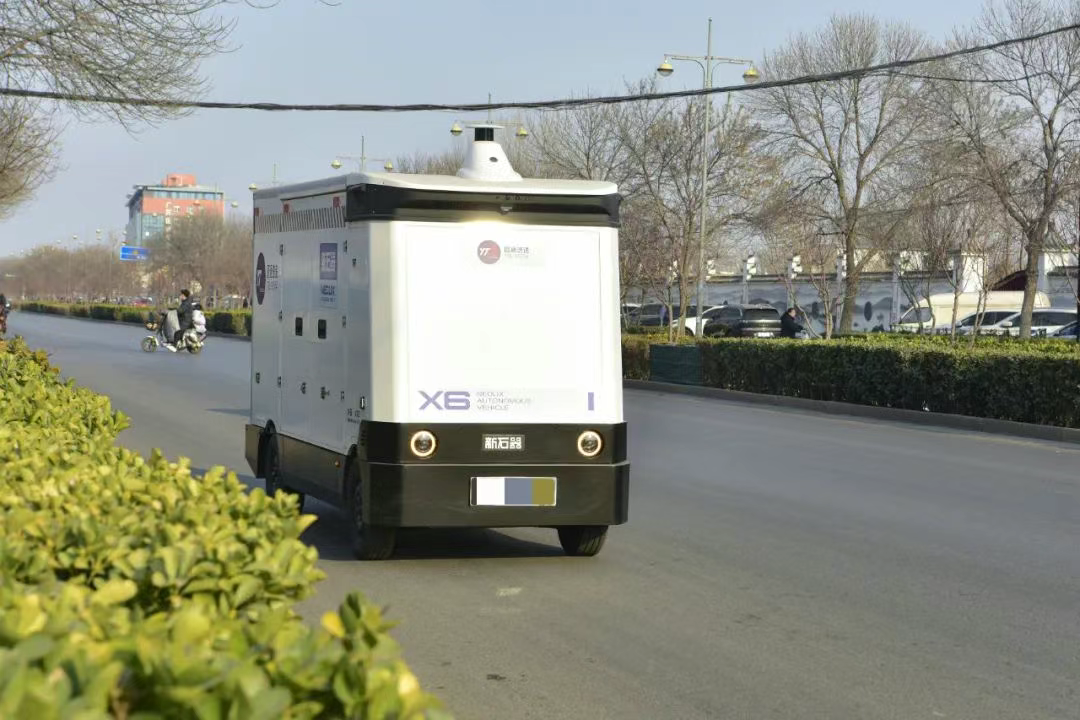 无人快递车运营单位廊坊市慧众科技有限公司董事长李红如介绍,车的顶部和四周分布着12个高清摄像头和1个激光雷达,可360度无死角感知环境,车辆搭载L4级自动驾驶系统,配备紧急制动、远程监控和语音提示功能。