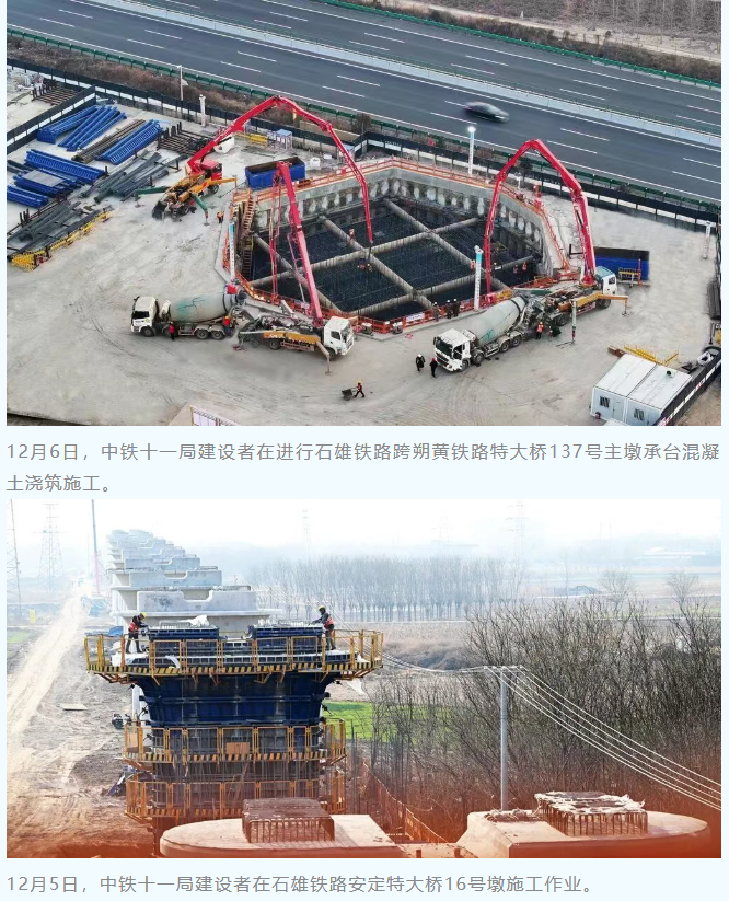 12月5日,中铁十一局建设者在石雄铁路安定特大桥16号墩施工作业。