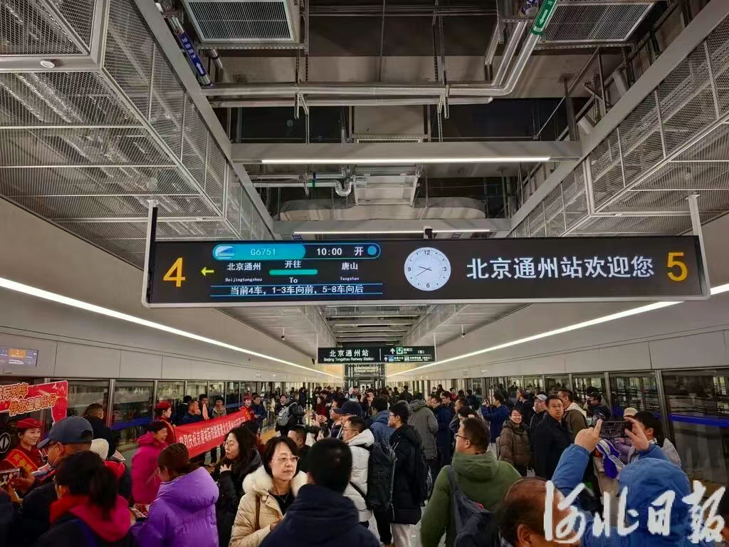 今天上午10时,G6751次列车从北京通州站准时驶出,标志着京唐城际铁路全线开通运营。