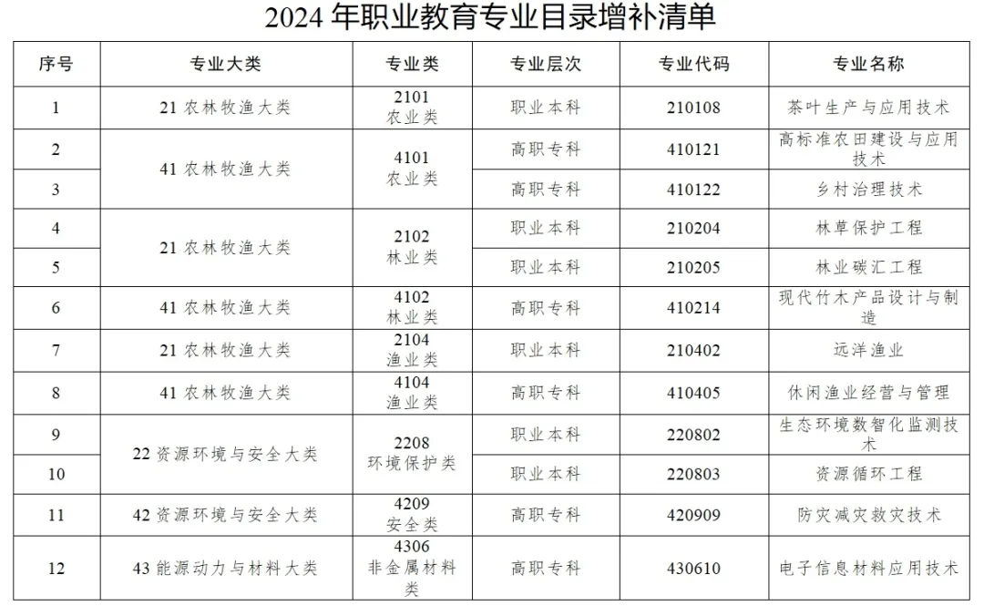 近日,教育部更新发布了《职业教育专业目录》,共增设40个新专业,其中,中职专业3个、高职专科专业20个、职业本科专业17个,增设数量是自2021年新版《职业教育专业目录》发布以来最多的一年。