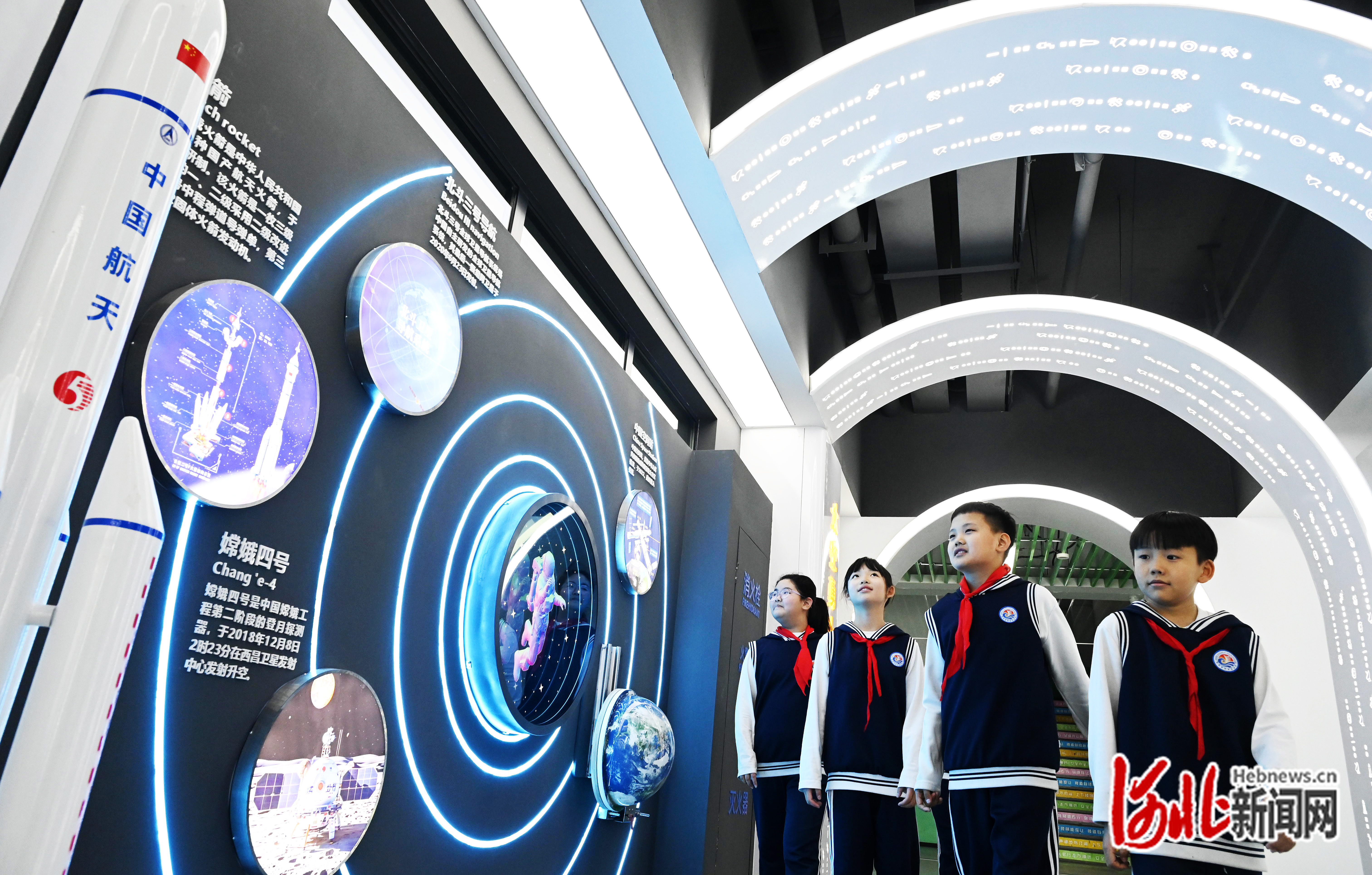 12月4日,雄安容西云溪小学学生在学校科技长廊感受中国航天科技发展伟大成就。 河北日报记者 刘光昱 摄