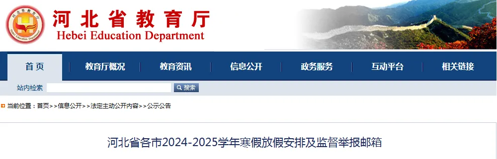 12月30日,河北省教育厅发布《河北省各市2024-2025学年寒假放假安排及监督举报邮箱》,公布河北各市中小学寒假时间,一起来看详细内容↓↓↓