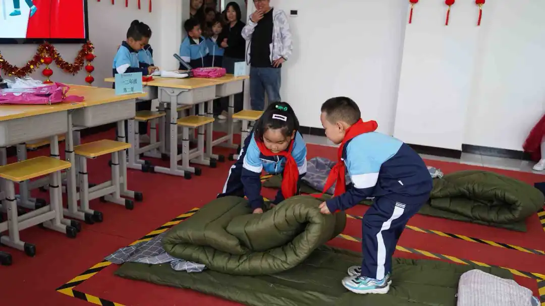 本次竞赛设1至2年级低年级组“巧手趣整”内务整理和3至5年级中高年级组“巧手焕新”整理学习空间两个综合项目。比赛现场,小小的鞋带在选手们的指尖穿梭,他们的动作敏捷而熟练,一根根鞋带在他们手中变成了展示技能的舞台。在铺床收纳环节,面对堆成小山的衣物,选手们毫不畏惧,熟练地将杂乱的衣服分类后叠整齐放入收纳框中。选手们展开床单,让床单平整地覆盖在床面上,叠好被子,动作一气呵成。原本杂乱的床铺变得整洁舒适,展示出他们出色的动手能力。快速折叠、环绕、打结,一系列动作流畅自然,鲜艳的红领巾在他们的胸前绽放出最美的光彩,展现出新时代少先队员昂扬向上的精神风貌。