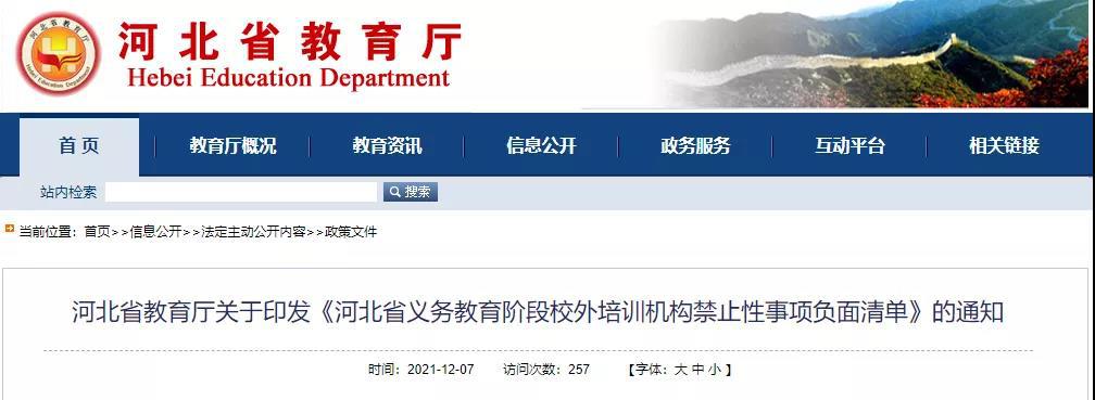 为不断规范全省义务教育阶段校外培训机构办学行为,根据国家有关要求和河北省实际,河北省教育厅最新梳理制定并印发《河北省义务教育阶段校外培训机构禁止性事项负面清单》