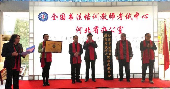 全国书法培训教师考试中心河北省办公室落户河北军创园,河北省文化厅原厅长、河北省广播电视台《永远跟党走》栏目总顾问李九元先生、河北省人大财经委原副主任李秉先先生、河北省文联原党组书记李世文先生、河北省广播电视台《永远跟党走》栏目总制片人魏钦华先生、河北省美术家协会常务理事王国强先生、河北省书法家协会理事颜默先生、河北省美术家协会少儿艺委会副主任兼秘书长田然先生、河北省硬笔书法家协会副秘书长李国良先生、石家庄市原文广新局党组副书记、副局长张秀芳先生、石家庄市美术家协会副主席胡凌波先生、全国书法培训教师考试中心河北省办公室主任程霖先生、全国书法培训教师考试中心河北省办公室副主任、石家庄市长安区美术家协会秘书长穆泓郡女士、启功书法艺术研究院院长秦发艺先生,还有来自省内外知名书画艺术家王景春、齐文辉、杨景文、徐鸿琪、冯婕、石峰、李文雁、孙常军、魏荣卿、赵献刚、李贵、司大鹏、吴玉双等几十位文化界的精英参加本次揭牌仪式。