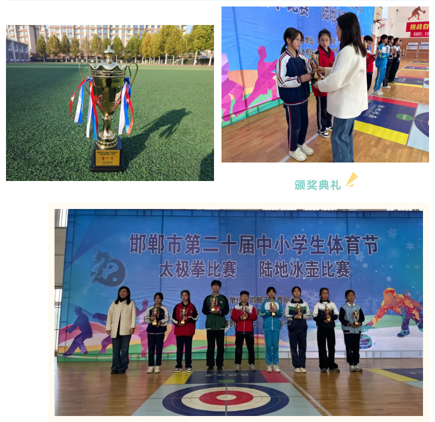 11月6、7日,邯郸市第二十届中小学生体育节陆地冰壶比赛在市第六中学举行。本次比赛,由邯郸市教育局主办。曲周县小河道小学陆地冰壶代表队作为曲周县唯一代表队参加比赛。比赛现场气氛紧张而激烈,孩子们全情投入,一路过关斩将,最终以优异成绩荣获陆地冰壶比赛(小学组)第一名,展现出了非凡的竞技状态和顽强的拼搏精神。