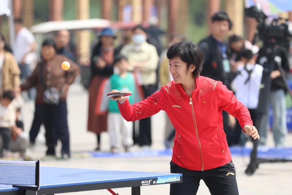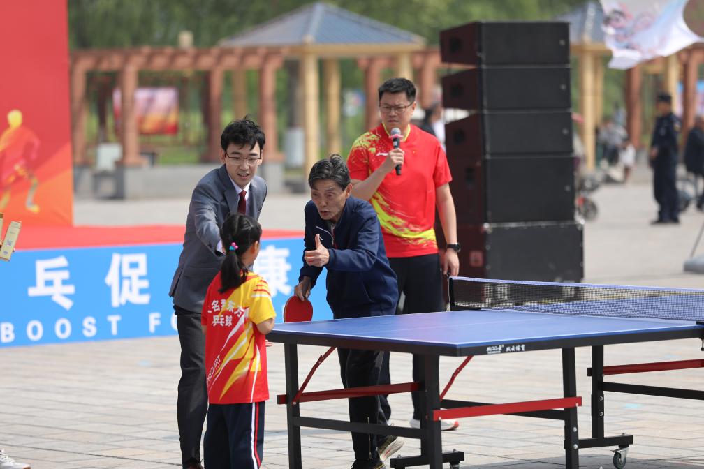 4月20日,2025年中国乒协“国球进公园·百园万人乒乓促健康”暨庆祝世界乒乓球日活动启动仪式在河北省邯郸市大名县举行。国乒名宿陆元盛、牛剑锋、侯英超现场与当地乒乓球爱好者切磋互动。