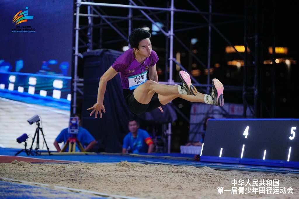 钟梓煜夺得男子跳远比赛铜牌。全国田径青运会官方供图
