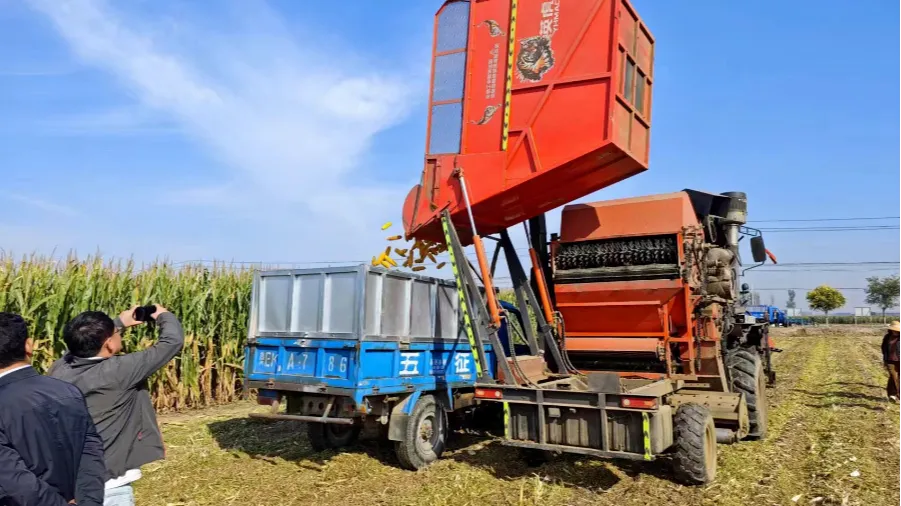 2024年6月5日,第四疃镇王庄付庄千亩示范方小麦季实收亩产725公斤,每亩施氮14公斤、灌水量120立方。2024年10月5日,玉米实收亩产797公斤,每亩施氮13.8公斤、灌水量75立方。全年小麦玉米亩产达1522公斤(1.522吨/亩),氮肥偏生产力超过50,达到54.7 kg/kg,实现“绿色吨半粮”目标。