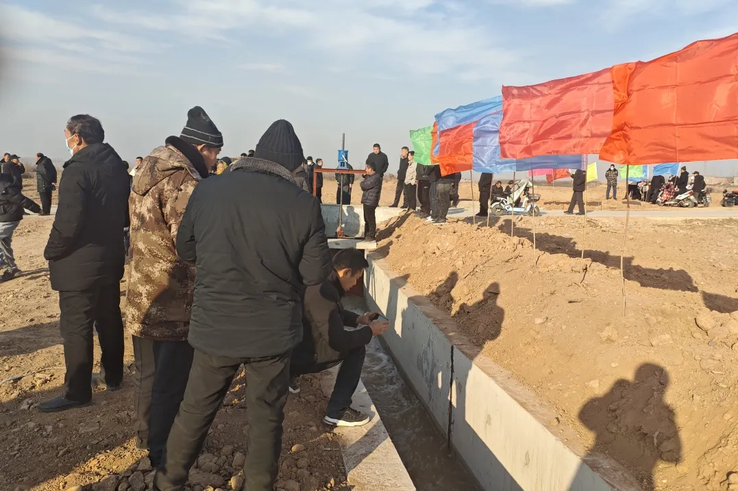 1月17日下午,跃峰渠韩家庄村西支渠通水仪式在西固义乡韩家庄村举办。澄澈水流沿着渠道欢快奔腾,吸引着村民们纷至沓来。大家满怀期待,脚步匆匆地走近渠岸,俯身凝望清澈见底的水流,赞叹不已,脸上满是幸福与满足 。