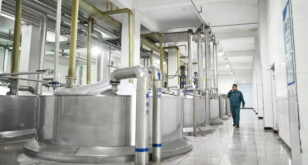 1月16日,宁晋县玉锋实业集团有限公司员工在无水葡萄糖生产车间巡检。