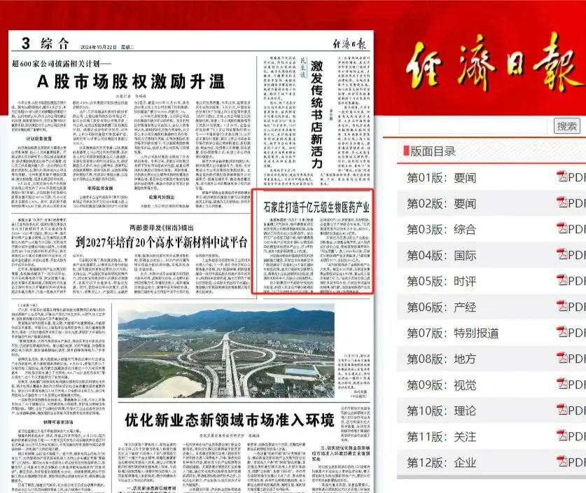 为加强生物医药基础研究和科技创新能力建设,石家庄市在高新区专门规划建设了总面积2.8万亩的国际生物医药园,重点打造研发创新孵化区,帮助龙头企业定制研发实验室,提供技术服务平台,加快企业培育孵化。在石药集团中央药物研究院的实验室,科研人员正在开展创新药的研发。“为了促进技术与产品创新,集团与国内外100多家高校、科研院所、企业建立了产学研合作关系。”石药集团党委书记张永太介绍,2023年,集团研发资金达48.3亿元。石家庄市还通过设立产业基金、创投基金、天使基金等方式,让不同成长阶段的企业,都能享受政策带来的“阳光雨露”。进入2024年以来,石家庄生物医药产业发展提速,已谋划重点项目37个,总投资395亿元。“系列举措推动了生物医药产业大发展。截至2023年底,石家庄共集聚生物医药企业1299家,营业收入首次突破千亿元。”石家庄市发改委二级调研员吴书科介绍,石家庄市将坚持优环境、强创新,推动生物医药产业规模持续壮大,驶入发展快车道。