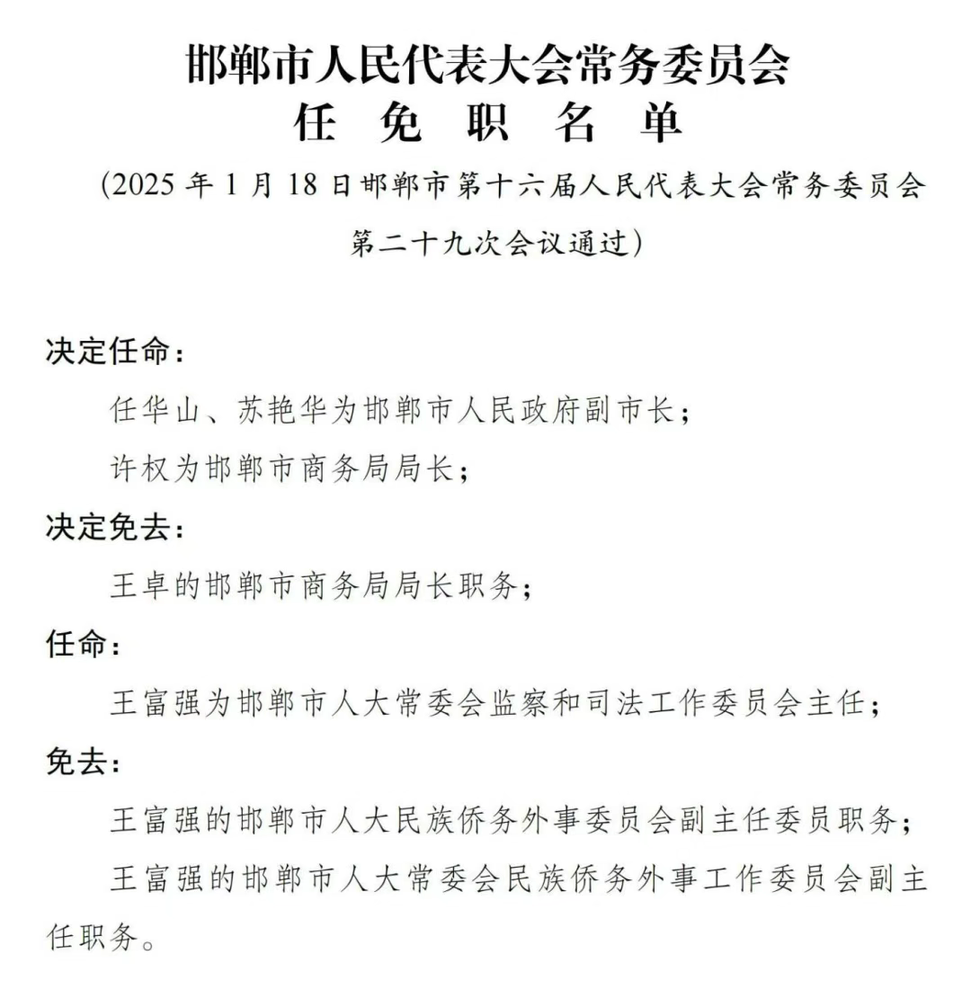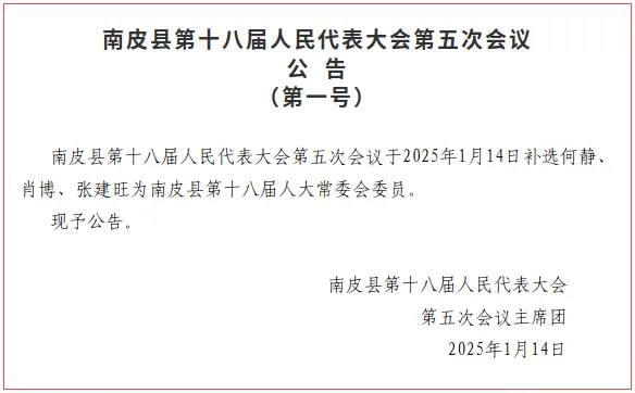 东光县第十八届人民代表大会第五次会议于2025年1月14日补选: