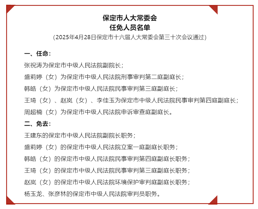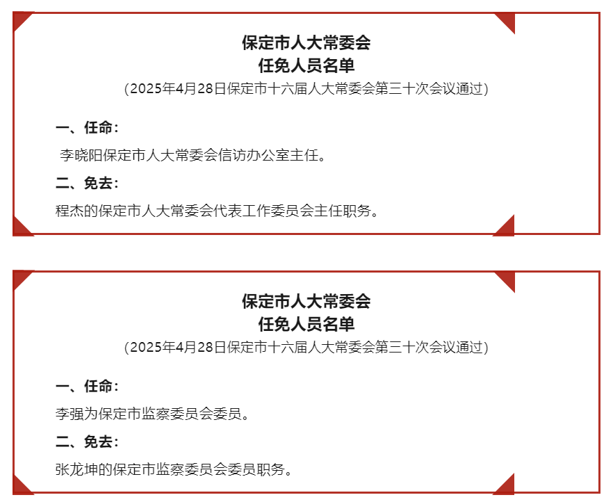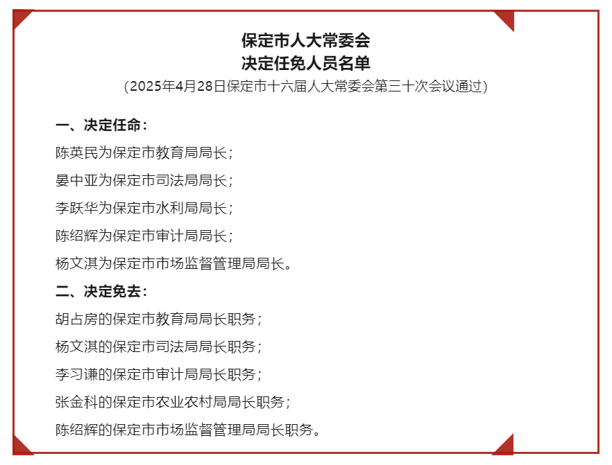 保定市最新人事任免