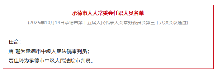 河北1市最新任免!