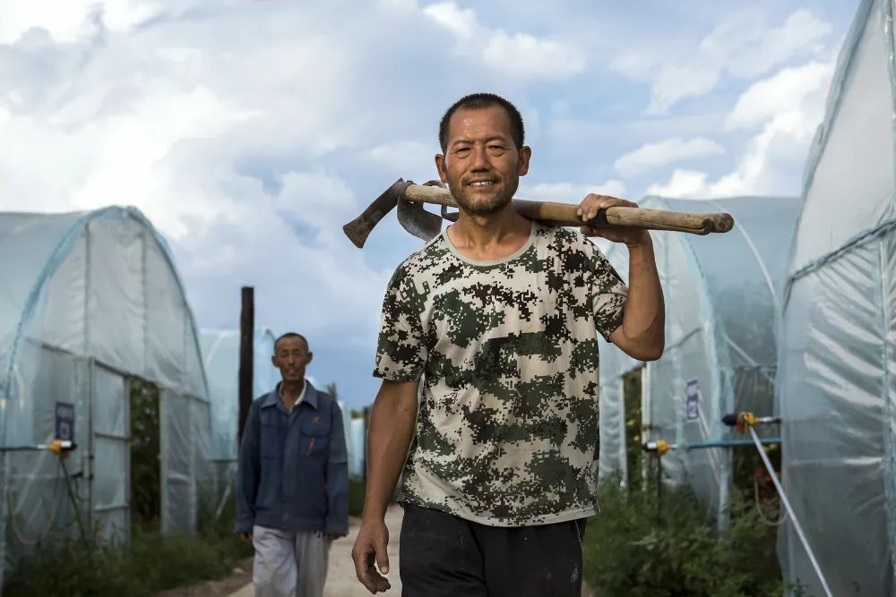 孙国亮干完农活收工返回驻村。(受访者供图)孙国亮清楚地记得,那是2016年2月24日,农历正月十七,冒着严寒,他被坑坑洼洼的土路“颠”进了四十亩滩。这是个三面环河、一面靠山的小山村。全村130多户、300多人,一条壶流河绕村而过。一进村,村里的贫困落后大大超出孙国亮的预料——土窑土房、残垣断壁、垃圾成堆。他了解到,这个村基础薄弱,老百姓一年种一季玉米,人均年收入只有2600元,村集体也是穷得叮当响。孙国亮深知,发展产业是脱贫致富的治本之策。经过调研,他发现这里水资源丰富,历史上种植过蔬菜。建大棚、种蔬菜,成为他的致富设想。村里没有资金,怎么办?建大棚搞经营,孙国亮拿出给孩子上大学准备的6万元生活费,爱人从娘家拿了10万元,他又硬着头皮向亲戚同学借了15万元……借了还、还了借,前后借了近百万元。直到2021年,大棚经营扭亏为盈,孙国亮才把借的钱还清。几年下来,村里建成大棚102座。孙国亮与村民一起劳动,一干就是一天,脚踩泥巴、一身臭汗,任谁也看不出这是一名警察老师。充实的扶贫生活,让初进村时180多斤的孙国亮变得又黑又瘦,体重降到了130多斤,两只手上满是老茧。孙国亮却笑着说,大棚里的蔬菜苗,是寄托着村民致富希望的宝贝,要悉心照料。