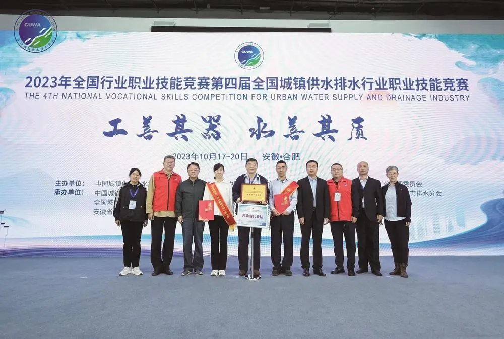 蔡海霞参加2023年全国行业职业技能竞赛第四届全国城镇供水排水行业职业技能竞赛(左四)。