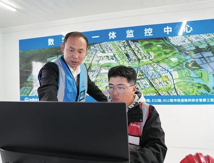 李坦在数字化一体监控中心查看工地施工情况