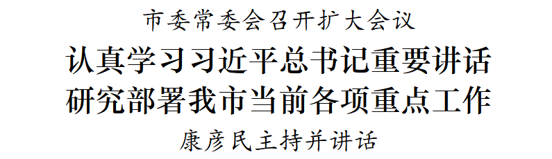 4月28日,市委书记康彦民主持召开市委常委会扩大会议,认真学习习近平总书记在博鳌亚洲论坛2022年年会开幕式上的主旨演讲、在中国人民大学考察和在中央财经委员会第十一次会议上重要讲话、致首届全民阅读大会贺信精神;解读《河北省新型城镇化规划(2021—2035)》,研究贯彻落实意见;研究《关于完整准确全面贯彻新发展理念切实做好碳达峰碳中和工作的实施方案》《关于加强新时代廉洁文化建设的工作方案》《市委2022年度落实全面从严治党主体责任任务安排》。省委第八督查组组长贾超绪列席会议。