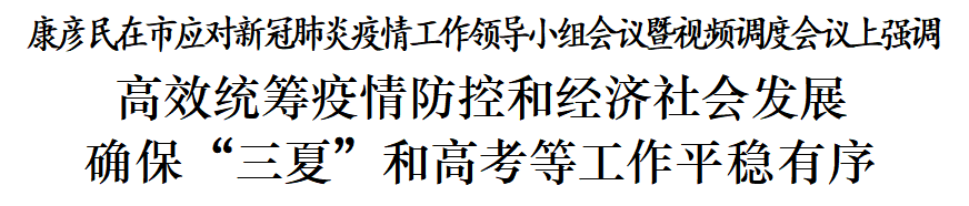 会议指出,各级各部门要进一步提高政治站位、强化思想认识,深入学习贯彻党中央、国务院决策部署和省委、省政府工作要求,坚持“疫情要防住、经济要稳住、发展要安全”,高效统筹疫情防控和经济社会发展,确保“三夏”和高考等工作平稳有序。