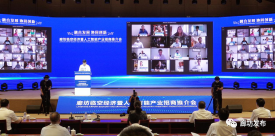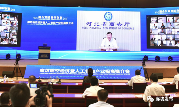 为全面贯彻落实省、市关于抓投资上项目促发展工作部署,6月8日,廊坊市举办临空经济暨人工智能产业招商推介会。该活动由廊坊市人民政府主办,河北省商务厅指导,廊坊市商务局、廊坊开发区管委会、临空经济区(廊坊)管委会、固安县人民政府共同承办,共邀请130多家中外企业“云”端对接洽谈,为推动廊坊数字经济加快发展续写新篇。