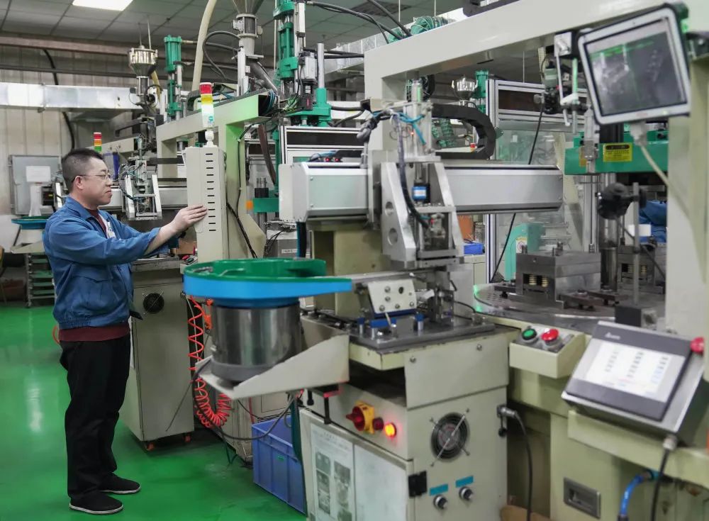 ↑4月9日,工人在河北省青龙满族自治县青龙镇逃军山村一家电子产品企业的生产车间工作。新华社记者 杨世尧 摄