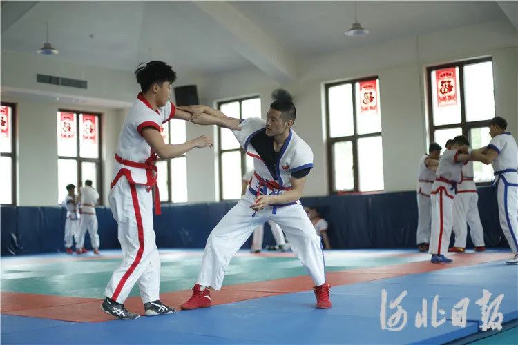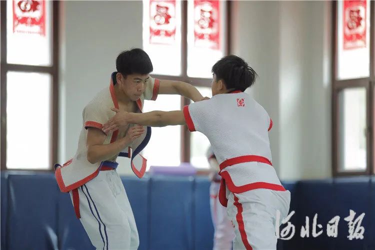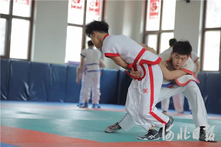 河北廊坊昊宇体育俱乐部内,河北省中国式摔跤队队员加紧训练。通讯员陈童摄