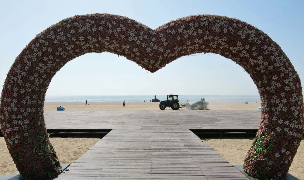 近日,旅游胜地河北省秦皇岛市各浴场的工人开始对浴场的沙滩进行整理,精筛细沙,检修旅游设备,准备迎接八方来客。