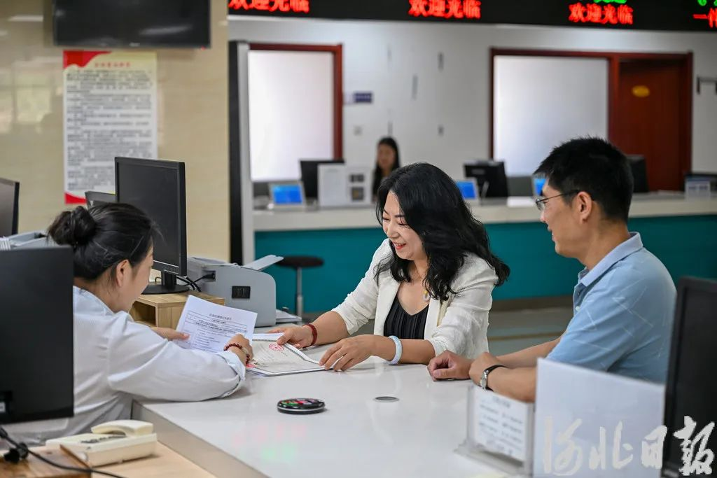 在承德市双滦区政务服务中心,驻企服务代表石红侠(中)在帮助企业进行新项目手续申报。(河北日报资料片)