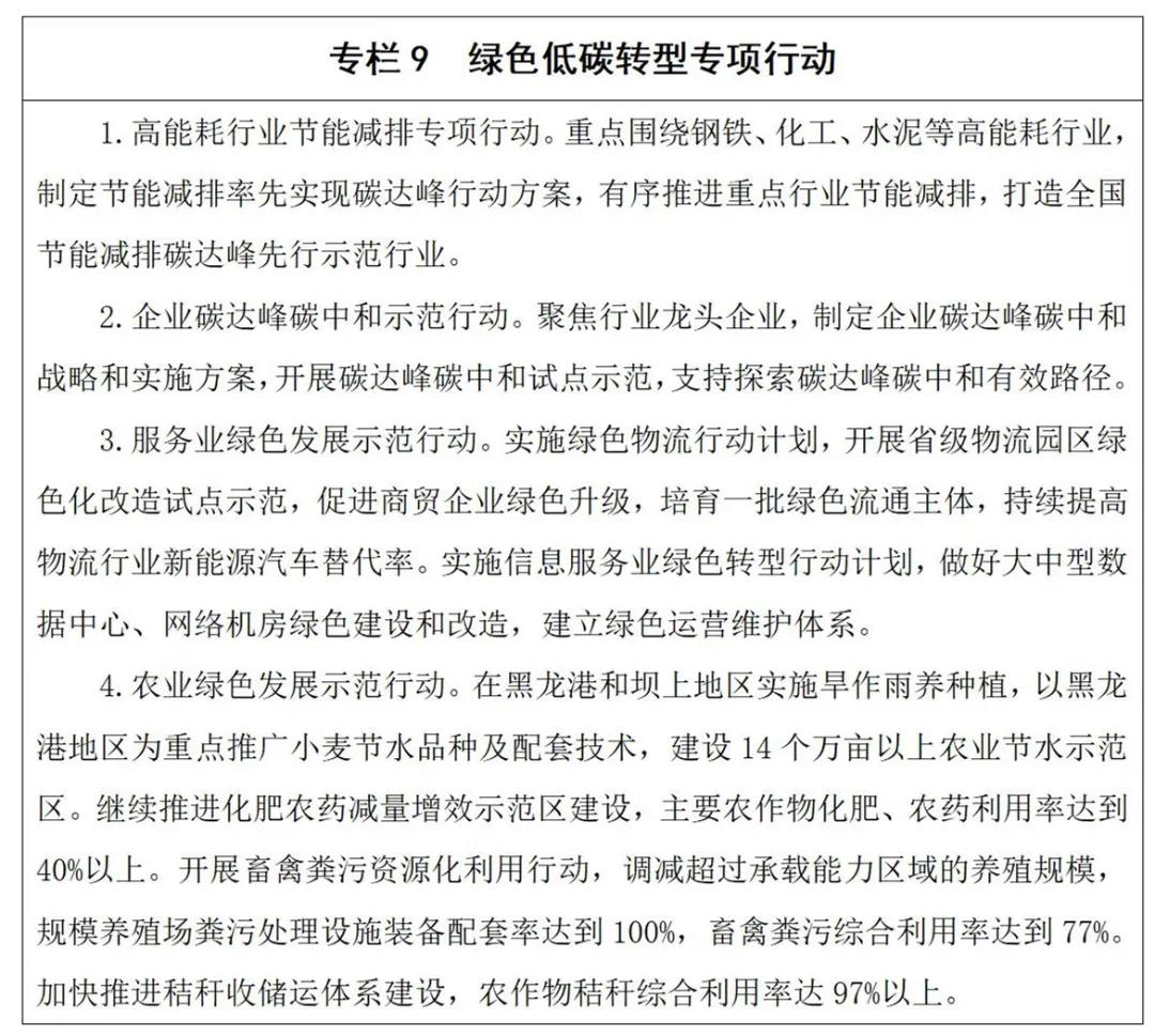 (三)降消耗减排放,深化绿色低碳转型。坚持生态优先、节约优先,深入实施可持续发展战略,落实碳达峰碳中和决策部署,深入实施清洁生产和绿色化改造,降低能源资源消耗强度,压减污染物和温室气体排放,着力打造绿色低碳循环产业体系。