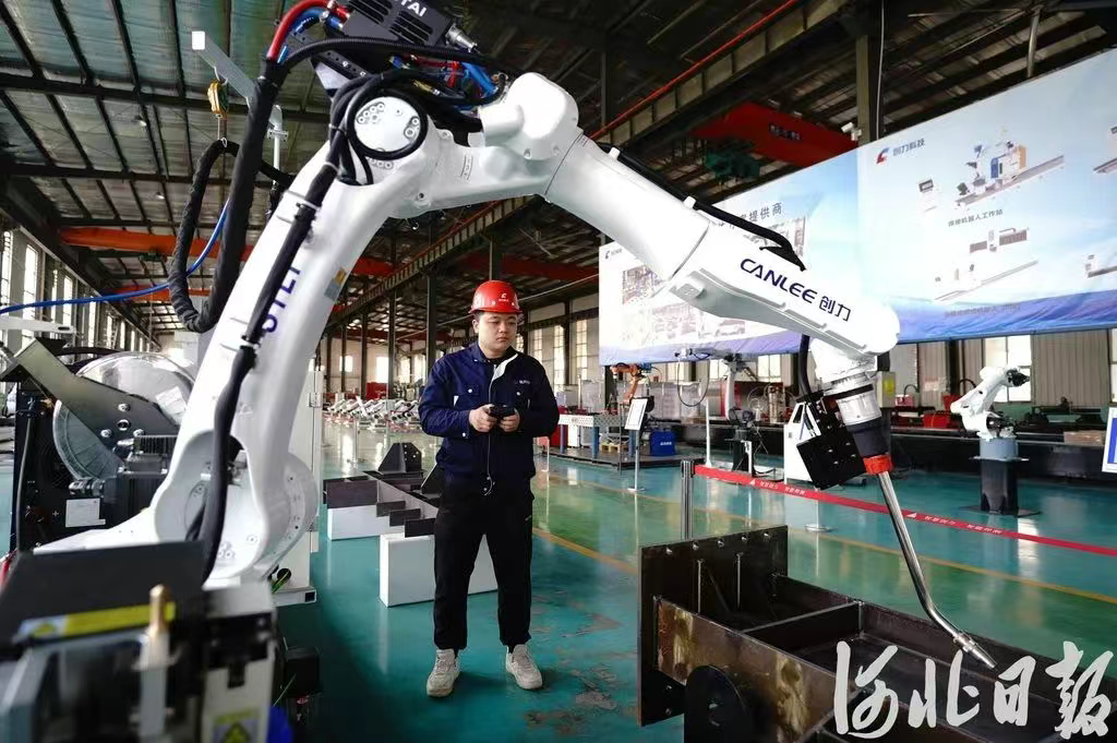 5月6日,河北创力机电科技有限公司工人在调试焊接机器人。河北日报记者赵永辉摄