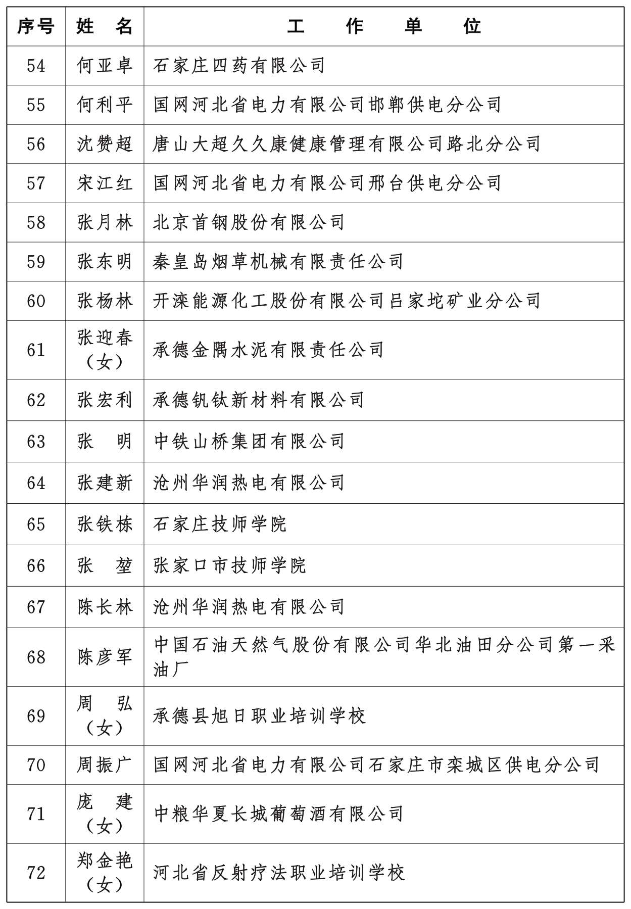 2025年度河北省燕赵黄金台聚才计划拔尖人才(技能平台)名单