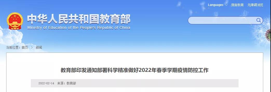 2月11日,教育部印发通知,部署各地教育部门和高校科学精准做好2022年春季学期疫情防控工作,确保安全开学。