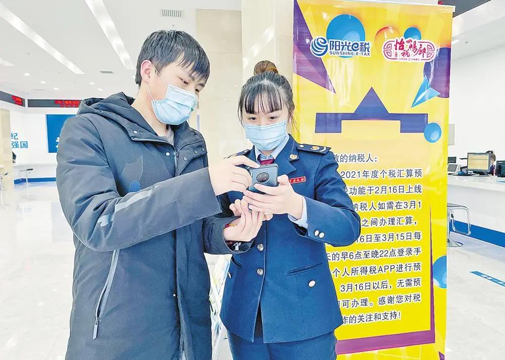 2月16日,在2021年个税汇算预约办税功能上线首日,国家税务总局廊坊市广阳区税务局邀请10名自然人、2户扣缴义务人前来切身体验。在办税服务厅,税务干部为前来体验的纳税人讲解了最新个税公告及税收政策,指导纳税人扫码下载个人所得税APP并成功预约。