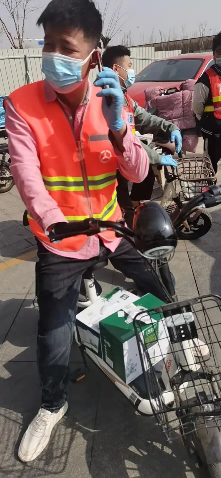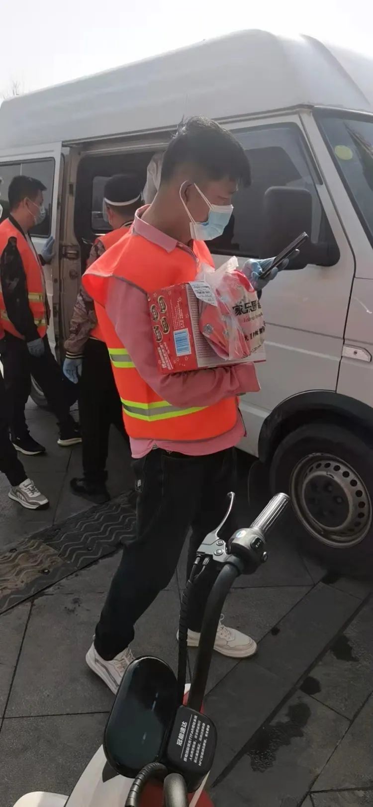 刚开始,他们都用电动自行车送货。为了多拉一些,他们在小区群里征集电动三轮车。看到征集信息,小区群里热闹起来:“我有电动三轮车”“我有电动汽车”“用我的,我有面包车。被封控在家,出不了力,我出送货工具”……小区居民争先恐后为大家尽一份力。最后,他们征集到4辆电动三轮车。