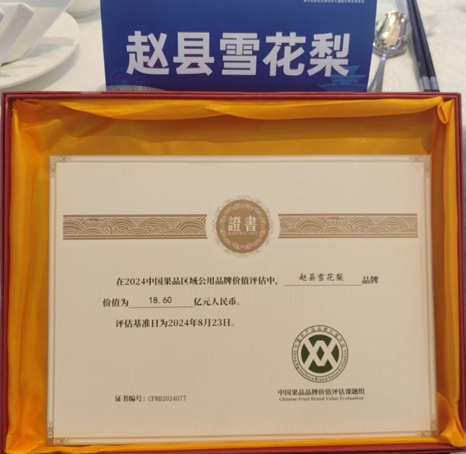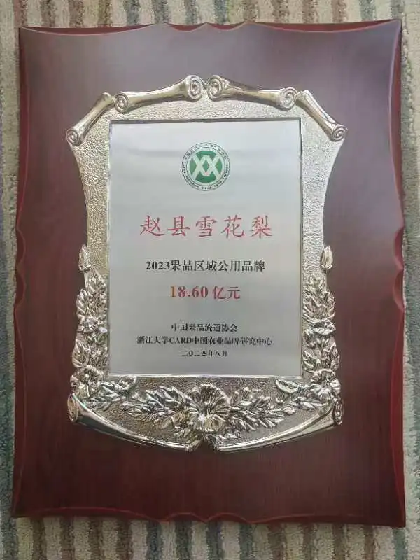 近日,在第九届中国果业品牌大会上,中国果品流通协会、浙江大学CARD中国农业品牌研究中心等机构联合发布了《2024中国果品品牌价值评估报告》,报告公布了全国116个果品区域公用品牌的价值评估情况。赵县雪花梨入围2024年果品区域公用品牌价值榜,品牌价值18.6亿元,位列全国77位。