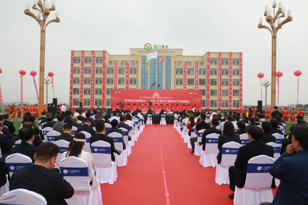 9月28日上午,座落于石家庄市行唐县上方镇的百万蛋种鸡产业园内彩旗招展,锣鼓喧天,一派喜庆景象。世界单体规模最大--中国·行唐百万蛋种鸡产业园落成典礼在这里举行,这是京津冀协同发展又一成功范例,标志着中国蛋鸡产业迈向了现代化、智能化发展轨道。中联部及省市县有关领导,全国高等院校、科研单位的领导,国家农业生物育种重大项目的团队代表,石家庄市直有关部门、行唐县四大班子领导及各委办局及乡镇主要负责人出席会议。中国工程院院士李德发、赵春江、金梅林、康相涛,中联部机关党委一级巡视员刘金峰、国家蛋鸡产业技术体系首席科学家杨宁、中国畜牧业协会总畜牧师宫桂芬、首农食品集团工会主席郑立明、沃德股份董事长孙皓等为产业园落成剪彩。中国·行唐百万蛋种鸡产业园占地720亩,集一个100万套蛋种鸡养殖基地、一个50万笼位育雏育成基地、一个年孵化雏鸡8000万只的孵化基地及一个年生产饲料12万吨的饲料厂于一体。产业园率先使用国内先进的“3+3”4列6层H型叠层笼饲养模式,以产业链集群优势实现从育雏到种鸡饲养、从种蛋孵化到饲料供给的全链条一体化管理,年可向社会提供优质商品代健母雏8000万只,满足全国8%的蛋雏鸡需求。“我们产业园坚持以科技创新为引领,大力提升新质生产力,依托国家蛋鸡体系科研专家团队,汇集运用研发的当今家禽领域国内外先进的技术和设备,成功培育出中国特色、世界独有的蛋鸡品种,实现从鸡舍环境到鸡蛋收集分级,从鸡蛋孵化到雏鸡处理的生产流程自动化、信息化、智能化管理,以智慧园区助力传统蛋鸡产业转型升级、提质增效,推进企业高质量发展。”石家庄峪口禽业有限公司总经理汪全生说。中国·行唐百万蛋种鸡产业园的落成,是京津冀协同发展的成功范例,实现了蛋鸡产业从首都向周边地区的合理转移,优化了京津地区的产业布局,是京津冀协同发展战略智慧的体现。它的落成增强了华北、西北良种供应能力,华北地区以京系列蛋鸡良种为核心,带动饲料生产、鸡蛋销售、食品加工相关产业发展,释放蛋鸡产业集群效应;西北地区携手山西晋龙、宁夏顺宝、陕西黄马甲等规模化龙头企业,为西北蛋鸡产业注入新的活力和动能。同时以产业园为核心,构建起“公司+超市+家庭农场”的线上线下一体化新型产业发展模式。“线上,智慧蛋鸡平台为养殖户量身打造了十二大数字化服务场景,帮助养殖户实现科学养、智能诊、精准防、线上买;线下,67家流动蛋鸡超市为养殖户提供饲料、兽药、疫苗、抗体监测、鸡群免疫等服务,实现良种扩繁、农资供应、蛋品加工、物流配送到百姓餐桌全链条的贯通,合力带动2万养殖场(户)增产增收,企业年区域产值可达256亿元,成为乡村振兴的典范。”汪全生说。中国·行唐百万蛋种鸡产业园的落成,是政产学研联合创新的科技示范平台,汇集蛋鸡产业最新技术和成果。产业园应用新模式,示范高科技,发展新农业,是科技创新在现代农业的生动实践,展示了中国农业科技的最高成就。它的建成将推动科技创新和产业创新深度融合,促进创新成果在全产业的广泛推广和应用,带动产业快速转型升级,引领中国蛋鸡产业高质量发展。中国·行唐百万蛋种鸡产业园的落成,是精准扶贫国家战略的璀璨成果。据介绍,石家庄峪口禽业项目一期工程于2019年3月在行唐县投产以来,创新探索政、银、农、社、企“五位一体”产业精准扶贫模式,让行唐县12个乡镇3329户6397名脱贫户年获租金218万元、股金200万元、薪金6000万元、利金240万元,带动约1000人就业,户均年增收2万元。典礼结束后,与会同志参观了石家庄峪口禽业有限公司的现代化鸡舍、研发中心基地、蛋库及现代化孵化厅,听取了行唐县农业产业发展情况介绍,随后参观了行唐县特色农产品。