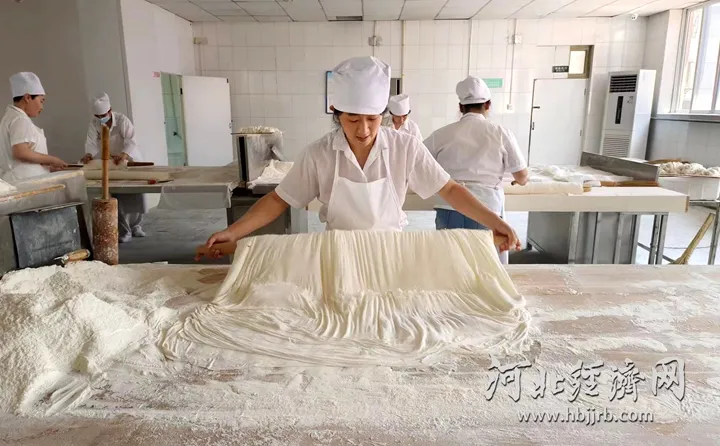 保定市区的漕河驴肉馆。“我们从层数、厚度多方面改良了面饼,制成速冻火烧面坯,并采取‘速冻火烧面坯+真空包装驴肉+预制菜’混搭销售模式。今年在进博会上,我们还首次推出全自动打火烧机,一次可以烤制30个面坯,大幅提升了工作效率,升级后将申请专利,推动‘新派驴火’从北方市场向南方省市一路挺进。”田振齐说。此外,创立于明朝的谷氏香业,整理恢复了传统手工制香的主要品种如养生香、药香、驱秽避瘟香,并在古法制香基础上,尝试加入一些冰片和梅肉,点燃后,让人鼻闻酸甜,口中生津,成为国内唯一一家与故宫合作的制香品牌,成为新“国潮”的典范之一。位于肃宁的沧州丽绣坊工艺品有限公司 ,整合手绣、手推绣、电脑绣、法式、欧式刺绣等工艺,打造了以刺绣手工产品为核心主题的文旅商业打卡地。唐山市新新麻糖厂创新蜂蜜麻糖产品,根据消费者饮食习惯变化,研发了更加健康的低糖木糖醇系列产品、便于携带的易拉罐系列产品。今年以来,河北积极鼓励有条件的城市打造老字号产业园、特色街区,引导老字号企业向历史文化街区集聚。11月14日,北京同仁堂、北京稻香村、片仔癀、永盛斋、重庆桥头、张一元等11家中华老字号企业与雄安新区签约,入驻雄安中华老字号特色街区。这些延续着世代相传的技法和匠心的老字号,不但带来了老味道,还在挖掘传统文化中因时而动、跟上节奏,掀起了创新潮。回力品牌计划在雄安举办更多线下潮玩活动;北京稻香村为满足年轻人对健康食品的需求,与科研机构合作成立低糖产品生产中心,同时在品牌建设方面与多个IP和品牌进行跨界联名合作。在衡水阜城县,当地以打造承接北京中华老字号食品企业外迁及新建项目产业平台为目标,规划建设总投资35亿元的北京·中华老字号食品产业园,构筑中华老字号食品企业聚集区。记者了解到,以中华老字号食品产业园为平台,已经有多家中华老字号食品企业入驻并投产。其中,总投资3.2亿元的稻香村食品生产加工基地,主要生产沙琪玛、铜锣烧、曲奇饼,年产值超过2亿元。河北双荣食品有限公司副总经理沈鸿图介绍,该公司是北方地区最大的沙琪玛生产企业,每天产量有50吨,每年为稻香村代加工各类糕点食品产值可达3000万元。