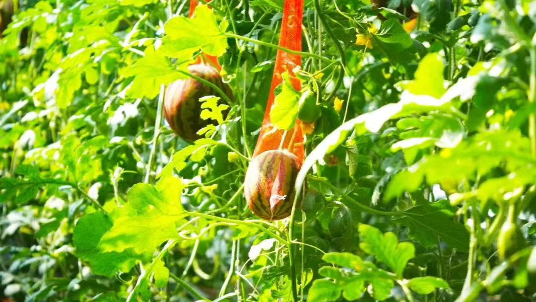 走进种植大棚一排排吊秧瓜整齐悬挂