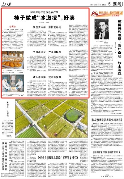 保定以冰柿加工企业为核心,构建“龙头企业+合作社(专业大户)+柿子种植户”产业融合发展模式,让农业产业升级成果惠及广大农民。“我们与农户签订收购协议,规定保底价,同时根据市场行情调整,保证比市面客商收购价高。”王永旺说。