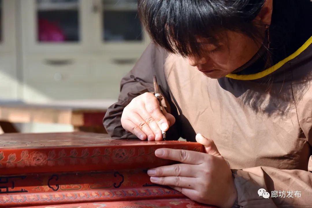 南汉村历史悠久,自明代开始,就有村民到北京琉璃厂做工,为当时的宫廷服务。几百年来,历经朝代更迭,村民们的手艺不仅没丢,还得到了发扬。百宝嵌被列入第六批河北省级非遗名录。要使百年技艺历久弥新,就要融入现代生活。南汉村在传承非遗技艺的同时大胆创新,并逐步探索出一条个性化定制的产品路线。在廊坊市缑氏家具有限公司生产车间内,河北省级非遗雕填漆器髹饰技艺传承人缑建辉正在为小巧的珠宝柜勾线雕刻。“手工艺要实用,更要体现人们对待生活的态度。”缑建辉说。这些年他一直在探索将传统技艺应用于现代生活用品,让人看得见、摸得着,更要用得起。